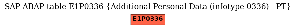title {label: "SAP ABAP table E1P0336 {Additional Personal Data (infotype 0336) - PT}", size: "20"} # Entities [E1P0336] {bgcolor: "tomato"} # Relationships